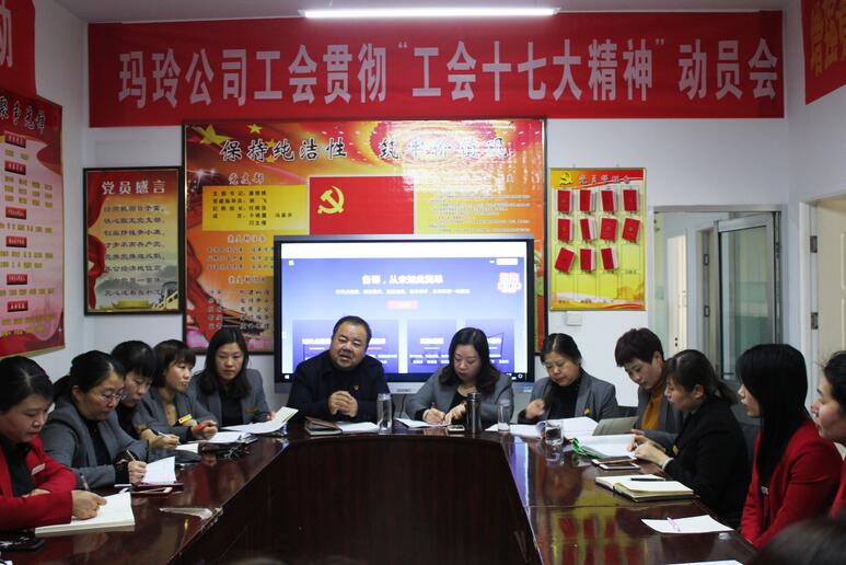 會(huì)議由工會(huì)主席張麗梅主持,首先對(duì)瑪玲公司工會(huì)的發(fā)展及工作內(nèi)容向所有人員進(jìn)行了系統(tǒng)的介紹,使新入會(huì)的會(huì)員對(duì)工會(huì)有了清晰的認(rèn)識(shí)。行政副總康錦繡為與會(huì)人員介紹、剖析了工會(huì)十七大精神并結(jié)合實(shí)際提出實(shí)施方案:一、堅(jiān)持以正確的政治方向?yàn)榻y(tǒng)領(lǐng),增強(qiáng)學(xué)習(xí)的自覺性,凝心聚力******提升政治站位。二、牢牢把握時(shí)代主題,團(tuán)結(jié)動(dòng)員廣大職工,統(tǒng)一核心價(jià)值理念,當(dāng)好主人翁,萌生新動(dòng)力,全力開拓創(chuàng)意創(chuàng)新的局面。三、切實(shí)維護(hù)職工合法權(quán)益,維護(hù)構(gòu)建和諧勞動(dòng)關(guān)系,提升服務(wù)新理念,統(tǒng)籌兼顧四個(gè)利益為推進(jìn)企業(yè)的健康發(fā)展提供保障。四、夯實(shí)服務(wù)基礎(chǔ),提升服務(wù)質(zhì)量,千方百計(jì)滿足職工群眾的生活需要,豐富職工群眾業(yè)余生活,弘揚(yáng)正能量,激發(fā)新動(dòng)力。